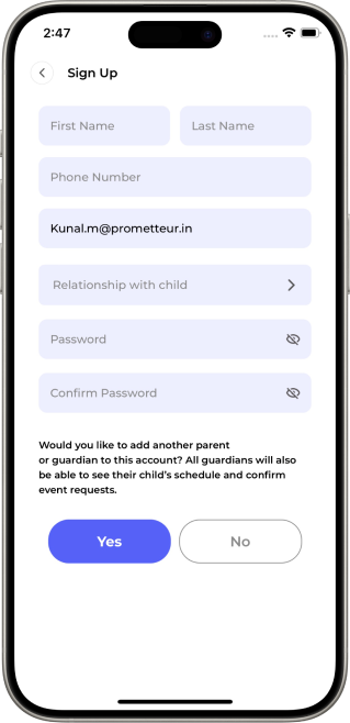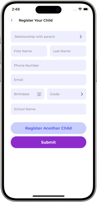 Children must download the TimeMe Student App, and enter the OTP code provided in their registration email to complete registration and get added to your family account.